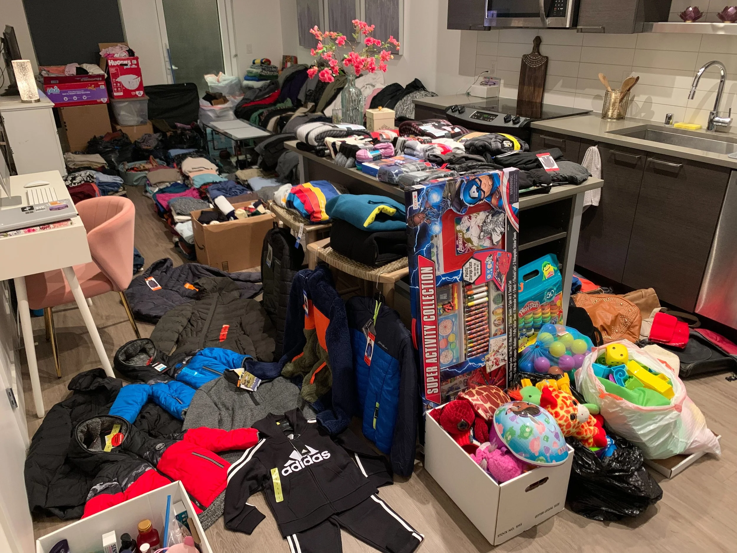 I asked her why. I was told their donation room is full. However, I have been distributing the clothes in the parking lot so the refugee families can have everything right away...